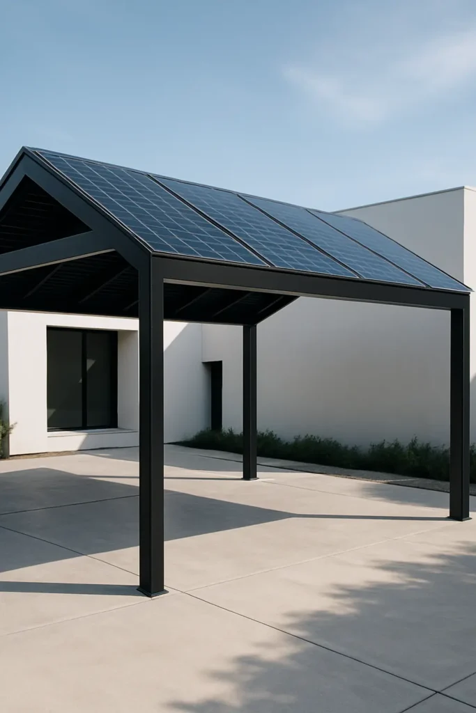 One of my favorite Creative Carport Designs Ideas is a solar-powered carport with sleek black framing—not just because it saves energy, but because it becomes a major design feature for modern spaces. I’ve worked with homeowners who wanted their minimalist homes to reflect their environmentally conscious lifestyle without compromising on aesthetics, and this setup always delivers. The clean, smart lines of the black framing, paired with the integrated solar panel, blend effortlessly into the architecture while quietly working behind the scenes to generate renewable energy. It’s the kind of forward-thinking design that feels both practical and beautiful, and it fits seamlessly into the lives of those who value sustainability with style.